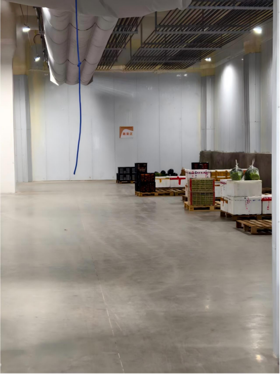 - 控温系统:左侧电控柜实时监控冷库温湿度,保障蔬菜肉类和冻货类存储环境稳定。