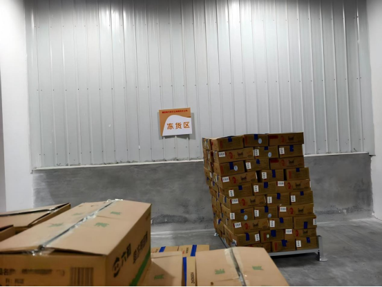 2. 存储环节:采购的冻品经检验室检疫、抽检合格后,进入冻货区存储,同步录入WMS系统。
